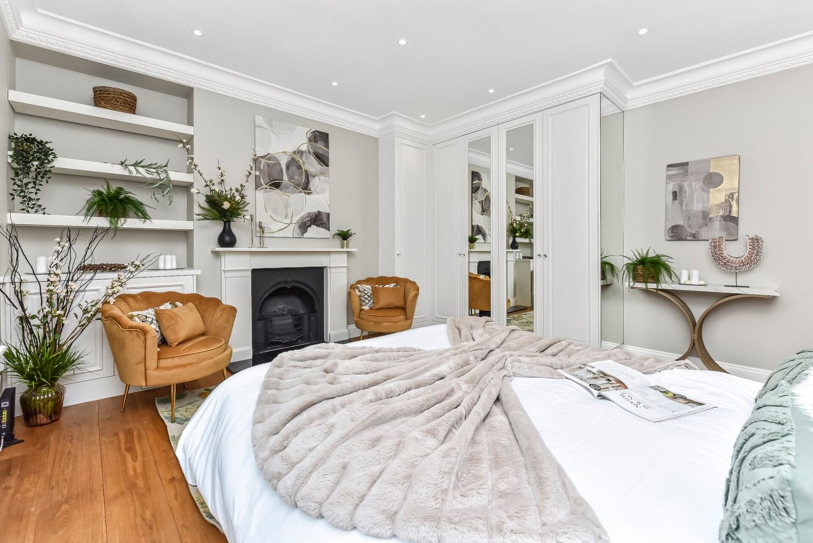 Holland Park House offers several beautifully appointed bedrooms, each designed to ensure the utmost comfort and privacy. The master suite is a sanctuary of luxury, with a king-sized bed draped in fine linens, a spacious dressing room, and an en-suite bathroom with a deep soaking tub and marble finishes. The other bedrooms are equally inviting, each with its own unique character, offering plush beds and charming views of the neighbourhood